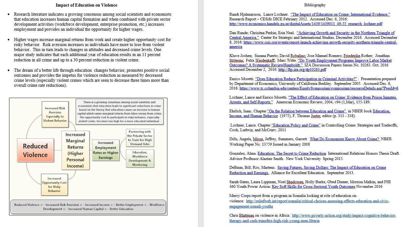 Research literature indicates a growing consensus among social scientists and economists that education increases human capital formation and when combined with private sector development activities (workforce development, enterprise promotion, etc.) increases employment and provides an individual the opportunity for higher wages.