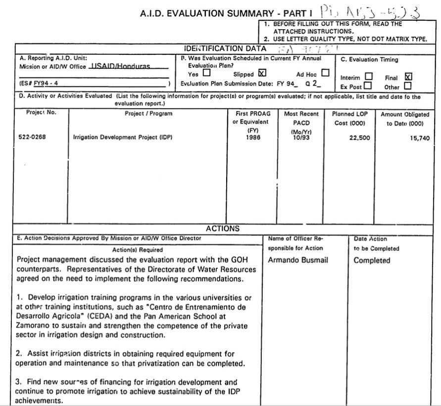 Honduras Irrigation Development Final Eval.1993.pdfHonduras Irrigation Development Project Interim Evaluation - 1989.pdf