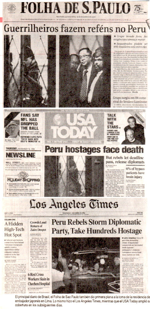 When everything started, I thought we might have a chance if the police could take the area, but then I heard an MRTA guerilla behind me shouting to keep my face down or be shot. I looked to my right and saw the head of our Economics Section, John Riddle, and to my left was my boss, Don Boyd, the AID Director. We heard the guerrillas shout “No somos assesinos, somos el MRTA.’ (We are not murderers; we are the MRTA.)