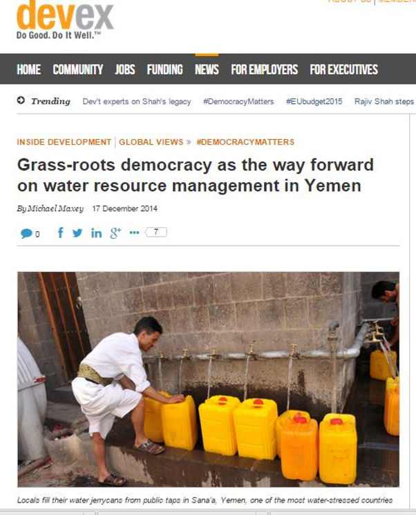 Grass-roots democracy as the way forward on water resource management in Yemen.