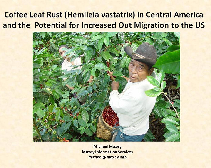 Coffee leaf rust disease in Central America is causing job loss now in chronically poor and food insecure areas now and the threat is for a greater increase over the next two years. The potential impact could be an increase in out migration from this region to the US.