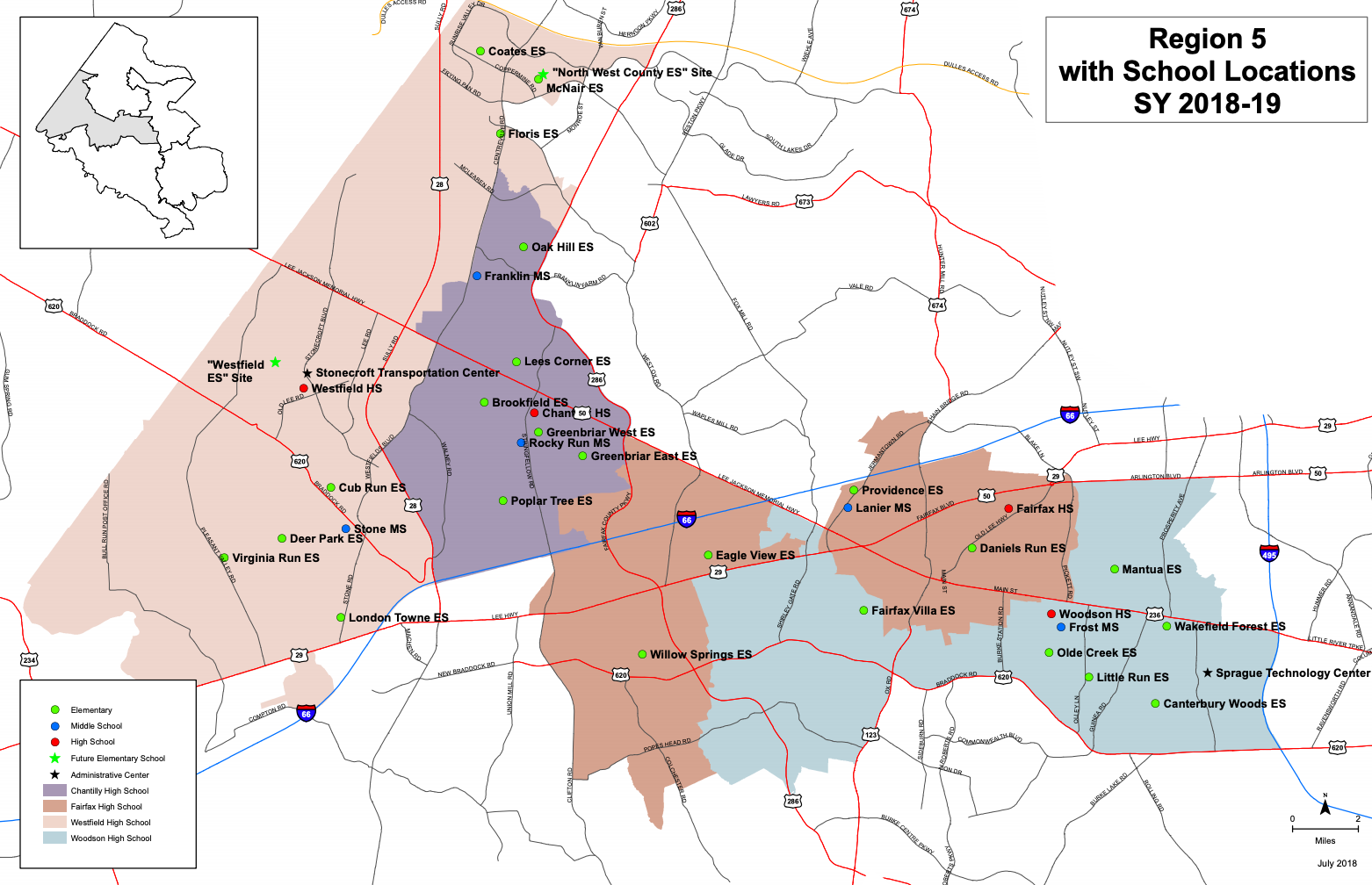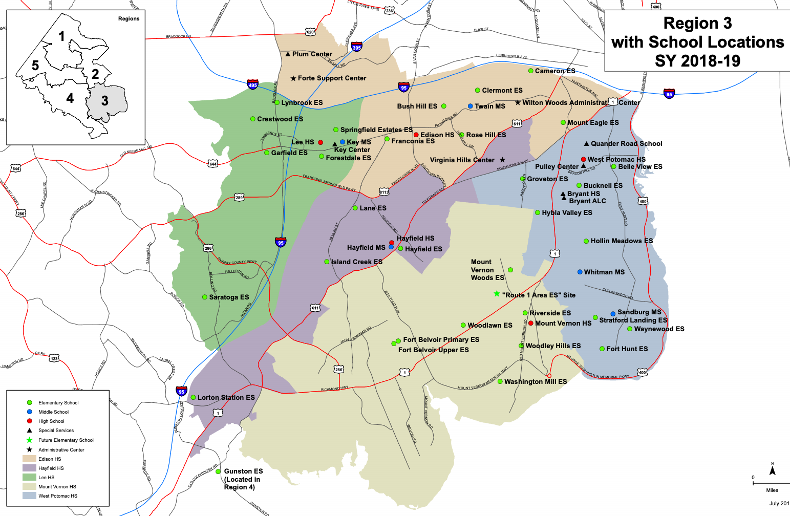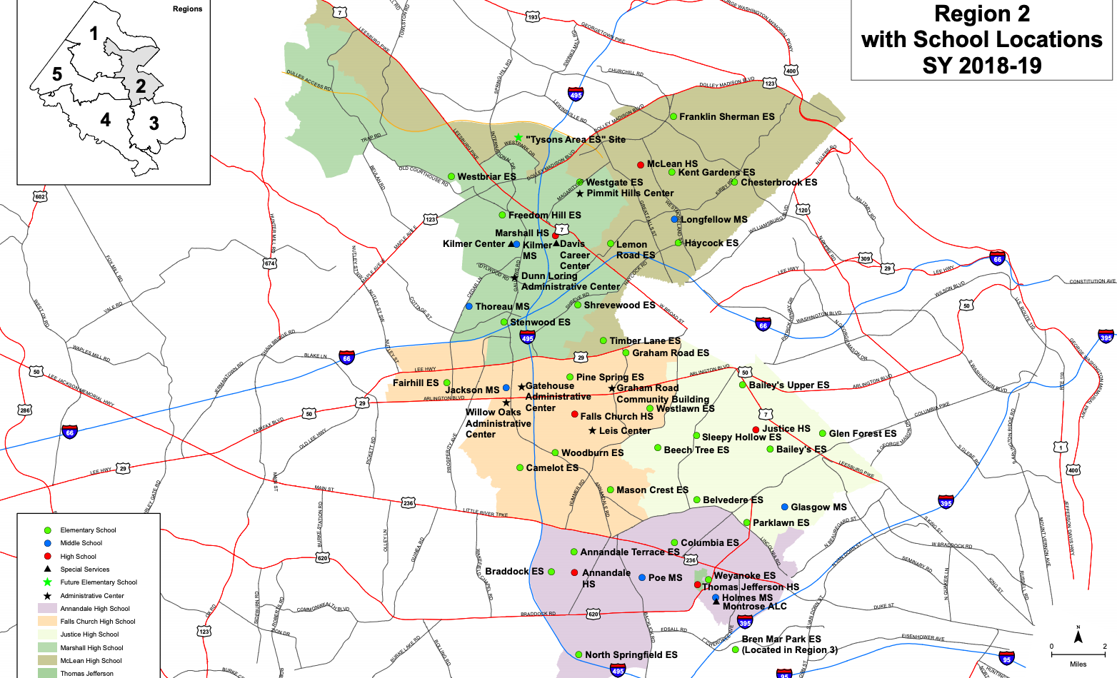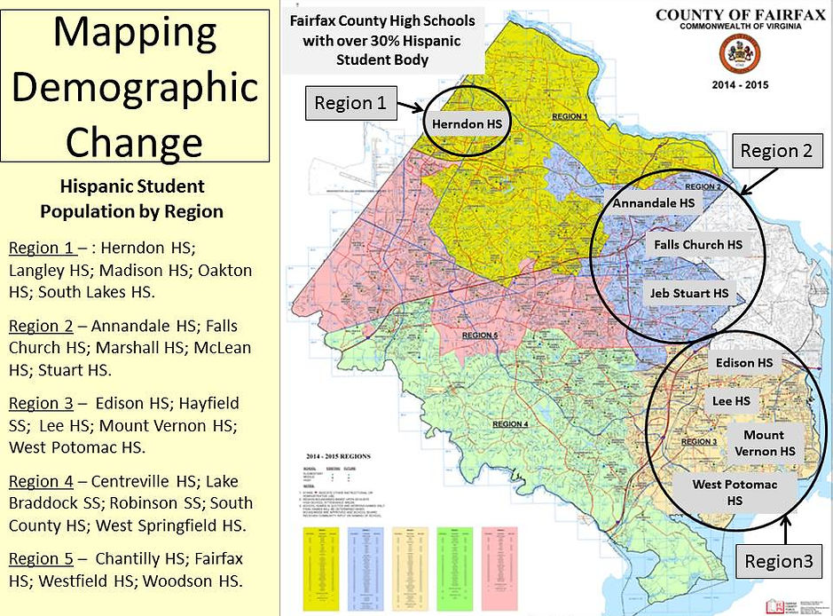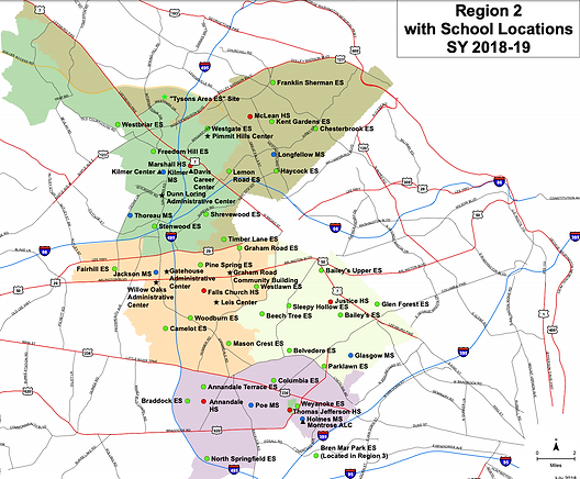 The following images show the schools within the VA-11 Congressional District. The first image is from an analysis done in 2014 - 2015 – this will be updated soon. The second image is of the VA-11 Distrcit for the 2018-2019 along with schools maps of Fairfax County by region. The first step will be to determine which schools are in the VA-11 District and then conduct a needs assessment on schools that have a disproportionately high percentage of Hispanic students. These schools and their needs will be the focus of the Marie Maxey Foundation.