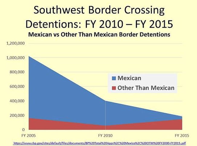 Unauthorized immigrants coming into the US via illegal border crossings in the Southwest are, according to Homeland Security data (Customs and Border Protection), coming primarily from the Northern Triangle of Central America. This represents a change in historical migration patterns over the last thirty years. In the 1990s and early 2000s, most of the irregular migration into the US on the Southwest border was from Mexico. However with the ramp up of trade and investment resulting from the North America Free Trade Agreement (NAFTA), the improved economic conditions led to a reversal of migration patterns with more Mexicans now coming back to Mexico than are migrating to the US.